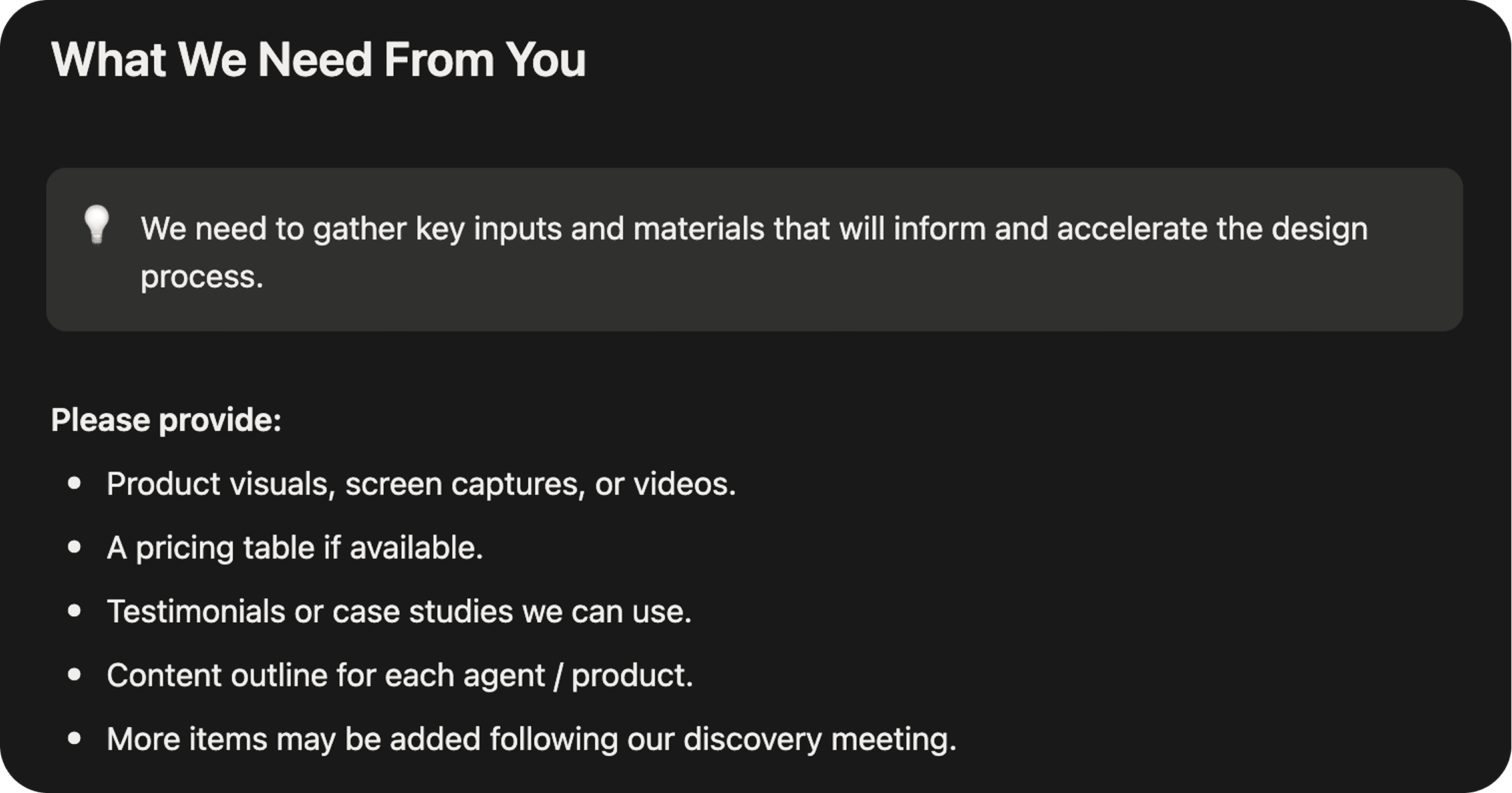 I came up with three groups of question to clarify product vision, content priorities, and site structure for the discovery workshop.